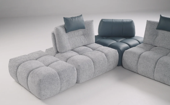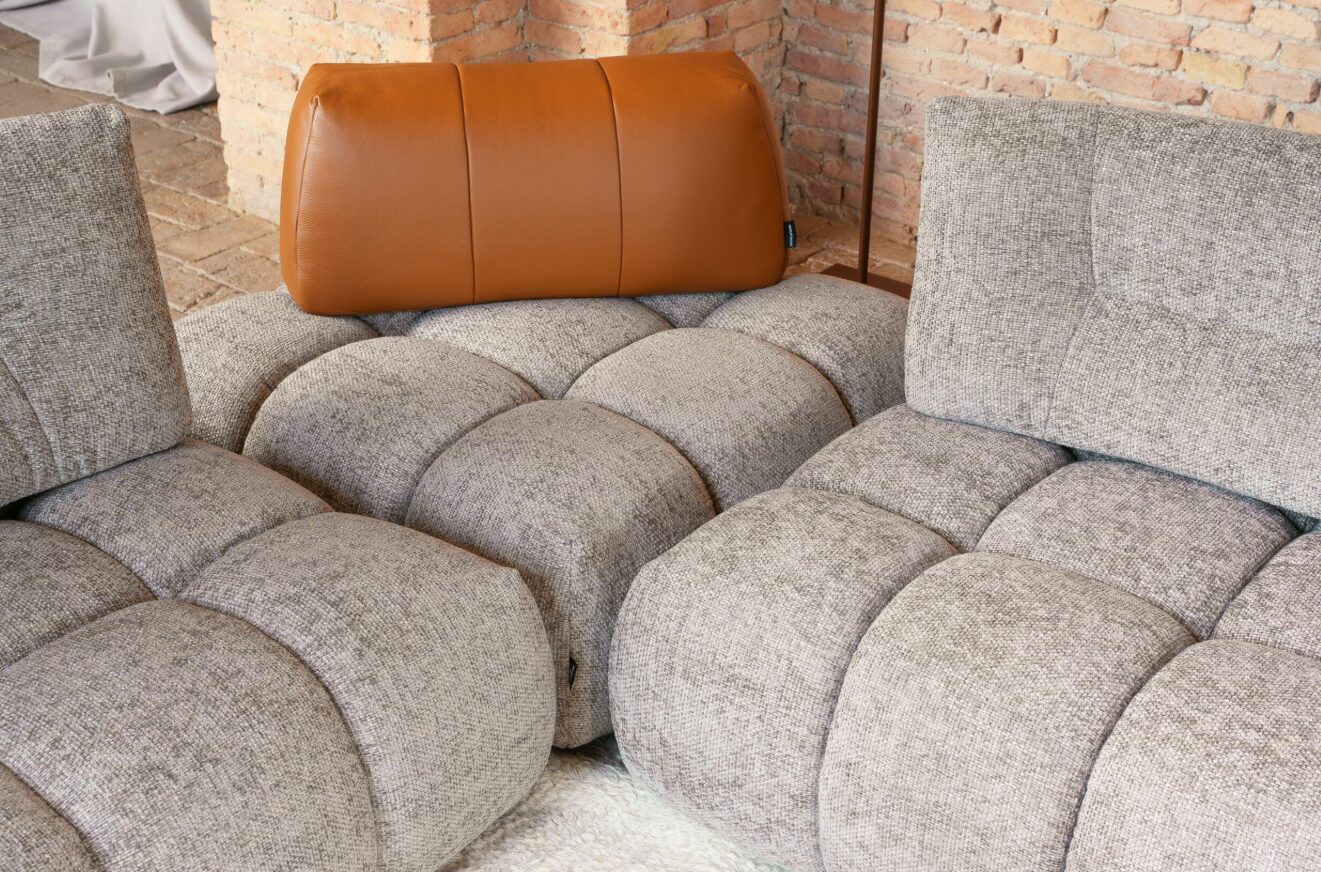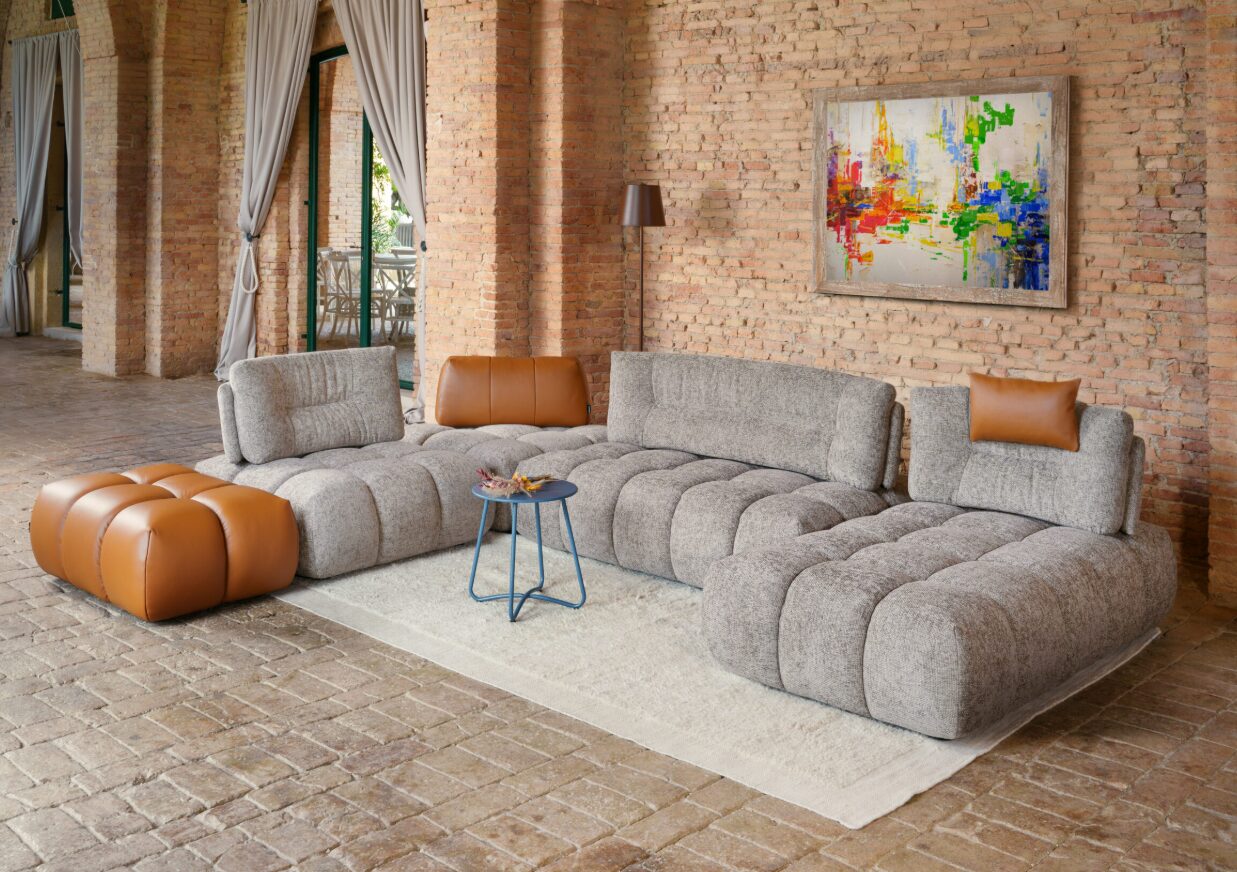Made of fine pinewood, the Boogie sectional sofa set features a modular design with plush, cushioned seating and adjustable backrests for added comfort. Its soft, neutral-colored fabric and tufted details create a cozy and modern feel, perfect for your living space.